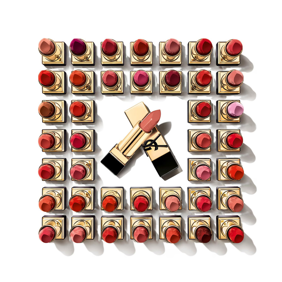 Il rossetto è presentato nell’esclusivo astuccio dorato della linea Rouge Pur Couture, un vero gioiello di design impreziosito dal logo YSL nero. Un accessorio che dichiara il tuo stile ancora prima di essere applicato.