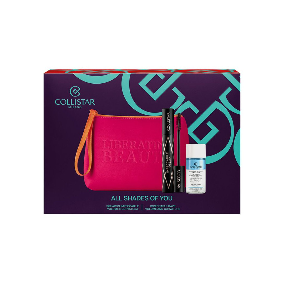 Cofanetto Collistar “Liberating Beauty”: Lo sguardo perfetto in un unico kit. Questo set esclusivo combina il celebre Mascara Impeccabile, che regala volume, lunghezza e definizione estrema alle ciglia, alla delicata Soluzione Bifasica Struccante (35ml), ideale per rimuovere ogni traccia di trucco, anche waterproof. Il tutto è racchiuso in una vivace ed elegante pochette fucsia, perfetta per i tuoi viaggi o come idea regalo glamour.
